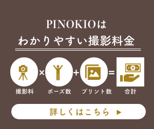 ピノキオでは時間に余裕を持って予約を受け付けておりますので、ゆったりと撮影することができます。他のお客様と一緒になることはありません。撮影はいつも店主が行います。笑顔一杯のよい写真を撮るために場をなごませることを心がけています。